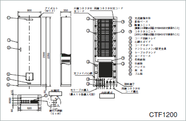 | CTF1200 | 最大10条 | 最大1200心 | 2(150接続/ユニット) | 10(120心/ユニット) | 800×2350×350 |