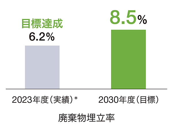 - 廃棄物・有価物等発生量原単位改善率2010年度比47.0%