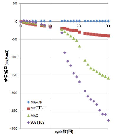 MA47Pは際立った耐酸化性を有し、酸化物のスケール等によるコンタミや構造物のCr成分と処理物の反応でお困りのお客様に最適な合金です。