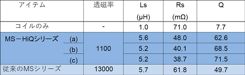- 充電効率向上のため、従来MSシリーズのQ値を下記独自技術の導入を含め大幅に改善