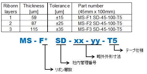 積層ラインナップ (打ち抜き加工45mm x 100mmの場合)