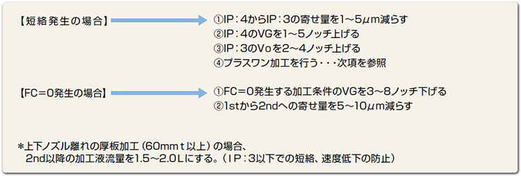 板厚によって以下のように設定を見直すと、良好な加工条件が得られる可能性があります。