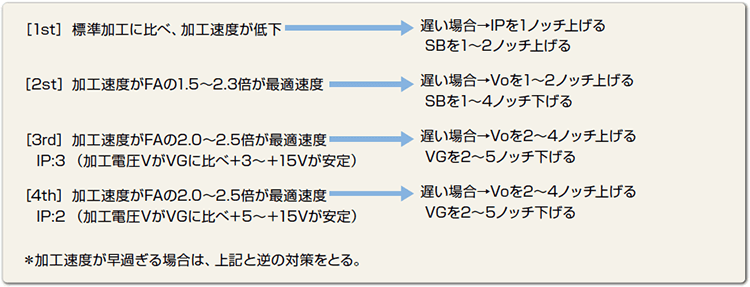 加工条件の最適化 例)三菱電機製ワイヤ放電加工機の場合